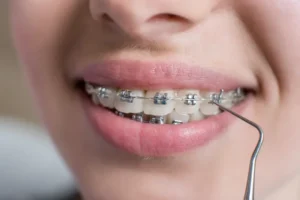 Los brackets son pequeños admientos metálicos que se pegan sobre la parte frontal de los dientes y se unen entre sí por medio de alambres, con el fin de ejercer fuerza sobre la corona y la raíz para mover las piezas hasta la posición deseada.